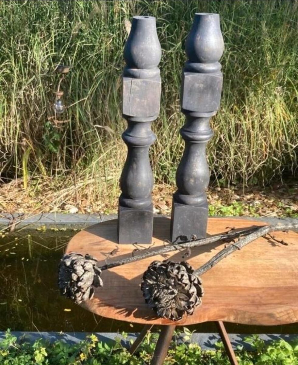Grote houten zwarte kandelaar set