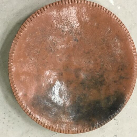 Afmetingen: Schaal 36,5 cm diameter en 21 cm hoog. Frame+schaal 95 cm hoog