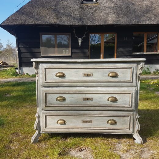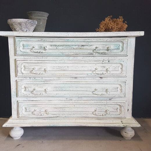 Vintage lade kast in grijze en witte tinten